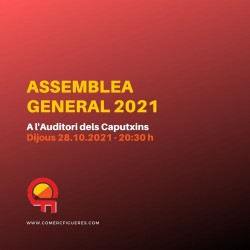 El Sr. Frederic Carbó Pujol, president de Comerç Figueres Associació, convoca a tots els socis a l’Assemblea General que es durà a terme el dijous 28 d'octubre de 2021 a les 20:30h a l’Auditori dels Caputxins (carrer Rec Arnau 8), amb el següent ordre del dia: